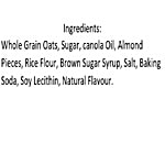 Whole Grain Oats, Sugar, Canola Oil, Almond Pieces, Rice Flour, Brown Sugar Syrup, Salt, Baking Soda, Soy Lecithin, Natural Flavour.