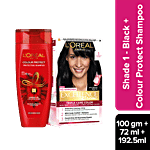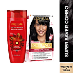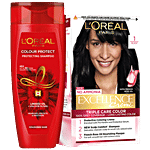 Buy Excellence color and get a color protect shampoo free. L'Oreal Paris Excellence Creme Hair Color is a triple care colour with triple care formula. 100 percent grey coverage from root to tips. Stronger hair, 85 percent more resistant to brushing. For a beautifully blended colour that complements your look, without a grey in sight. Rich, even, long lasting hair colour with a soft and silky touch. Excellence Creme hair colour triple protection means three ways to care for your hair: ceramide protects, pro-keratin strengthens & collagen replenishes. In this pack you will find: the protective serum, colouring creme and developer and conditioner. 100% resistant grey coverage. Clean and easy preparation and application. Rich, radiant, gorgeous color all with Excellence® exclusive non-drip crème. Nourishing hair color. Also, in this promotional pack you will find Color Protect Shampoo 192.5ml free. Color Protect Protecting Shampoo nourishes the hair and transforms its surface. Hair is protected and Color radiance is visibly prolonged