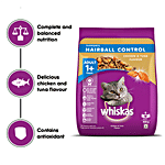 No Question askedWhiskas Dry Cat Food For Adult Cats - Supports Hairball Control, Chicken & Tuna Flavour, 1+ Years