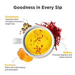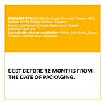 Milk solids, sugar, turmeric powder, saffron, saffron extract, turmeric extract, cardamom extract, and natural and nature-identical flavours.