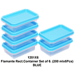 Unica Flamante Rectangular Containers Set - Durable, Storage Boxes, For Kitchen Use, Blue, 200 ml (Pack of 6)