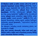 Wafer With Milk Cream(30.02%), And A Smooth Hazelnut Crème Filling (29.4%), Sugar, Vegetable Fats, Skimmed Milk Powder, Wheat Flour, Hazelnuts, Cocoa, Butterfat,