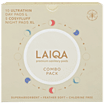 Laiqa Ultra-Soft Day & Night Sanitary Pads - Combo, Made With Natural Fibers, Rash-Free Premium With 4 Wings, Comes With 100% Biodegradable Disposal Bags, 15 pcs (10 L+ 5 XL)