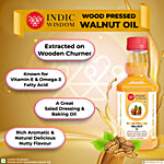 IndicWisdom Wood pressed Walnut Oil (cold-pressed) is extracted on a wooden churner. No chemicals or preservatives are used during extraction & processing. Wood pressing ensures it is full of natural anti-oxidants & nutrients. Known for Vitamin E and Omega-3 fatty acid called alpha-linolenic acid (ala). Rich aromatic & natural delicious nutty flavour a great salad dressing & baking oil seeds sourced from Kashmir. Why wood pressed: flavorful (retains natural aroma & flavour) antioxidant-rich nutritious (retains natural vitamins & minerals) trans-fat-free no chemical 100% natural preservative free non-gmo different usages of this superfood: salad dressing dips & sauces baking blend in smoothies & shakes for an extra zest & a healthful boost skin & hair care dark circles thyroid massage oil.