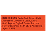Garlic, Salt, Ginger, Chilli, Asafoetida, Cinnamon, Clove, Anise, Black Pepper, Bayleaf, Onion, Turmeric, Flavor Enhancer (E627, E631), Anticaking Agent (E552)