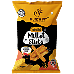 Munch Fit Roasted Millet-Sticks -Peri-Peri for some extra spicy fun. Hungry? Craving for something more than your everyday potato chips? Something that's both tasty and healthy? Then our millet sticks are for you. Garnished with mixed spices and made with fibre-rich millets. We are on a mission to support our farmers by prioritizing their products. Have our fibre-rich tasty millet and sticks and taste something different. Explore our range of healthy snacking options in different flavours like tangy tomato, chilli garlic, sour cream and onion and many more on BigBasket.