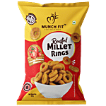 Munch Fit Roasted Millet-Rings Tangy Tomato gives a tangy twist to your favourite healthy snack. Tangy tomato is the one flavour that can never go wrong. It is sweet and spicy and loved by everyone. Now imagine healthy millet rings in your favourite flavour. Millets are a rich source of fibre which is important for your digestive health. Along with antioxidants that keep your heart healthy, this is the ultimate healthy snack. Explore our range of healthy snacking options in different flavours like tangy tomato, chilli garlic, sour cream and onion and many more on BigBasket.