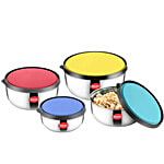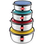 Jensons Fresca Stainless Steel Food Storage Set With Multi Color Lid - Air Tight, BPA Free, Easy To Clean