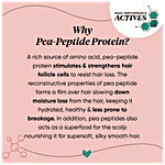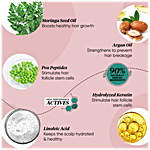With concentrated doses of actives - Pea peptide protein, Hydrolyzed Keratin and Linoleic Acid, it stimulates the hair follicles to promote new growth and strengthens hair, making it fuller, denser and stronger. 90% Nature derived formula, it is made with Argan Oil & Moringa Seed Oils to add strength and shine. Additionally, Murumuru and Shea butter help preserve moisture within the hair strands making it super soft and healthy-looking. No sulphates, silicones, parabens and other nasties, this Clean Haircare is Free of dubious 8: - NO Sulphates (SLS, SLES Free) - NO Silicones -NO Phthalates - NO Parabens - NO DEA -NO Mineral Oil -NO Denatured Alcohol - NO Formaldehyde GMO-Free. Cruelty-Free. Dermatologically Tested and Safe for use. Hair feels stronger, thicker and voluminous. Looks fuller and glossier.