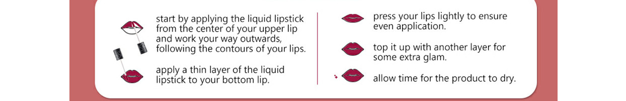 About the Product I am a matte finish, smudge-proof liquid lipstick that won’t dry your lips out. I am highly pigmented & come with a soft-touch applicator for even application in a single swipe. I am lightweight, non-sticky & will last up to 8 hours. I am free from talc, parabens, phthalates & other known nasties. I am 100% vegan & cruelty-free – no animal-derived ingredients or pigments, I promise!
