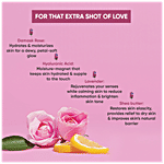 Hydration just got a whole lot luxurious! Hydrate your skin post-shower with this lightweight serum body lotion that combines the wonders Damask Rose Oil with moisture magnet, Hyaluronic Acid, to make your skin’s hydration a whole new luxurious experience. It gets quickly absorbed and penetrates deep into the skin to give you a non-greasy moisturized freshness, and a soft subtle pinkish glow.