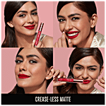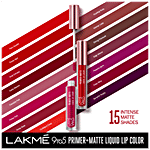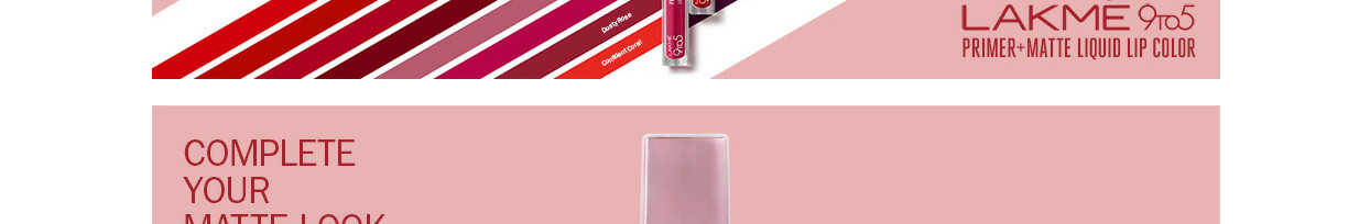 New Lakmé 9to5 Primer + Matte Liquid Lip Colour. This revolutionary formula with a built-in primer smoothens your lips to give you a crease-less matte finish. It is transfer-proof, smudge-proof and waterproof and will last all day long. The intense matte colour glides on easily and stays effortlessly smooth and matte, no matter what! Got a hectic day at work or an impromptu after-hours plan? Don't worry, the in-built primer will leave your lips unruffled and smooth, through it all. Infused with Vitamin E and Argan oil, you will love how the luxurious lip colour moisturizes and nourishes your lips, so they always feel soft, supple, and hydrated.?? What's more, the Lakmé 9to5 Primer + Matte Liquid Lip Colour is non-sticky, comfortable and doesn’t weigh down your lips. It has a one-stroke intense matte color payoff that lasts long. And its creamy application gives you a smooth finish, unlike any other liquid matte colour. Edgy, bold, glam, playful, or natural, there's something for every mood. So, pick your favourite from 15 intense matte shades from Deep Maroon and Power Pink to Confident Coral and Vivid Crimson. Go ahead, make a statement with smooth matte lips that stay crease-less all day!