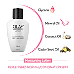 Olay Moisturising Lotion is formulated with ingredients to help improve and maintain youthful-looking skin. Filled with goodness of coconut, castor seed oil and glycerin, this formula is designed to be light, non-greasy and quickly absorbed into the skin.