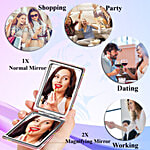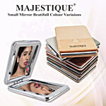 Majestique Magnifying Compact Mirror comes with a sturdy hinged construction encased in glittering pack that opens to reveal two mirrors within. Perfect for applying make-up or eyebrow, tweezing, and face. An absolute essential in a feminine handbag to give a clear reflection of beauty.