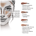After applying the foundation, use the Earthy Contour and apply it to the directed area of the face as given on the pack. Accentuate your features using earthy contour and powder matt for a defined look. Then touch it up with Mystic Rose blush on the cheekbones and finish the look using the Shimmer Dust Highlighter by applying it on the bridge of your nose, cupid's bow and the inner corner of your eyes.