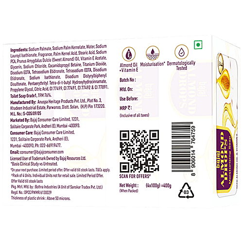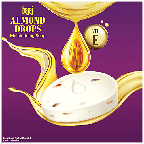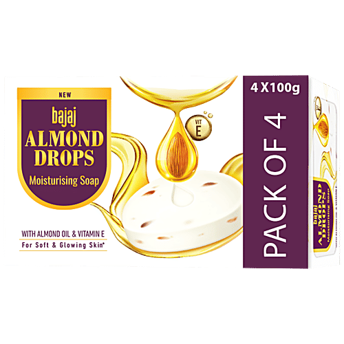 Bajaj Almond Drops Moisturising Soap - Almond Oil & Vitamin E, For Soft & Glowing Skin, 100 g (Pack of 4)