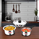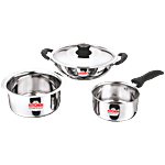 Kitchen Essentials Stainless Steel Cookware Set - Induction Base, 3 pcs (Saucepan - 1 L, Kaidai & Tope - 1.9 L each)