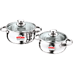 No Question askedKitchen Essentials Belly Cook N Serve Set - Stainless Steel Casserole, With Glass Lid, 14 Cm & 16 Cm, High Durable