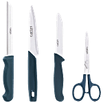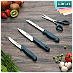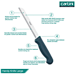 Fruits Knife is a new knife from the house of Godrej Cartini. It is an all-purpose knife that slices, peels, chop, and carves almost any fruit. The serrations on the taper ground blade ensure effortless chopping. This knife is designed with a stainless steel blade of length 21.5 cm and a thickness 1.6 mm. The blade is made from food-grade, hardened, and rust-resistant stainless steel which ensures long-edge retention. The handy knife - large is engineered for cutting vegetables and light-duty kitchen applications.