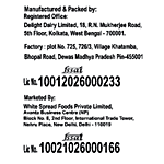 Manufacturer Name & Address: Delight Dairy Limited, Registered Office- 18, R.N. Mukherjee Road, 5th Floor, Kolkata, West Bengal- 700001, Factory- Plot No. 725, 726/3, Village Khatamba, Bhopal Road, Dewas Madhya Pradesh- 455001