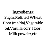 Sugar, Refined Wheat Flour (maida), Vegetable Oil, Vanilla, Corn Flour, Milk Powder, Etc.
