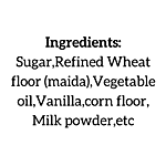 Sugar, Refined Wheat Flour (Maida), Vegetable Oil, Vanilla, Corn Flour, Milk Powder, Etc.