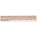 Acidity Regulators (INS 330, INS 296, INS 297), Glucose, Lactose, Emulsifiers & Stabilizers (INS 414, INS 331, INS 415), Edible Oils, Class I & II Preservatives (INS 211), Vitamins, Mineral and Permitted Anticaking Agent (INS 551). Contains Permitted Synthetic Food Colour(s) (INS 122, INS 110, INS 133) And Added Flavour(s) (Natural and Nature Identical Flavouring Substances (Kala Khatta).
