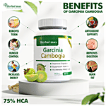 Herbal Max Garcinia Cambogia Capsules - 70% HCA, Natural Fat Burner, Improves Digestion, Suppresses Appetite, 60 pcs