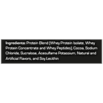 Protein Blend (Whey Protein Isolate, Whey Protein Concentrate And Whey Peptides). Cocoa, Sodium Chloride, Sucralose, Acesulfame Potassium, Natural And Artifical Flavours And Soy Lecithin