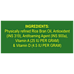 Physically Refined Rice Bran Oil Antioxidant (INS 319) Antifoaming Agent (INS 900a) Vitamin A (25 IU Per Gram) & Vitamin D (4.5 IU Per Gram)