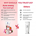 Acne enemy face wash gel is the winning combination of traditionally trusted herbs with the advanced Alpha- CURe complex which effectively prohibits the proliferation and activation of acnegenic bacteria. The gel-based formula is fortified with a rich fraction of -Mangostin from Garcinia & rich botanicals- Rubia, Indian Maddar, Green tea, Rose & coconut water which efficiently reduces redness, balances out excessive oil production, splashes skin with micronutrients & heals acne eruption. Leaving skin purified & refreshed.