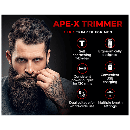 Beardo Ape-X 3-In-1 Multipurpose Trimmer Grooming Kit For Men - USB Charge