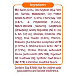 Milk Solids (24%), Oils (Soybean Oil & Palm Oil), Sucrose, Maltodextrin, Soy Protein Isolate (6. 35%), Fibers [Soy Fiber (2. 47%) & Polydextrose (1. 75%)], Nature - Identical Flavouring Substances (Strawberry), Acidity Regulators [INS 331(iii) & INS 332(ii)], Minerals, Emulsifier [INS 322(i)], DHA Powder (0. 47%), Vitamins, Probiotics [Lactobacillus acidophilus NCFM (0. 022%) & Bifidobacterium lactis HN019 (0. 073%)], Choline Chloride, Antioxidant Premix [Antioxidants (INS 304), Rapeseed Oil & Sunflower Oil], Synthetic Food Colour (INS 124), L-Carnitine, Inositol & Taurine.