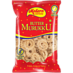 A traditional and tasty savoury Modern Kitchens Butter Murukku is bound to become your new favourite! Made with rice, pulses, and the proper high-quality spices, this delicious South Indian snack follows an authentic recipe that has stood the test of time to emerge as a widely loved favourite. Perfect to munch on when you're craving something extra crunchy. This amazing snack has a taste that lingers long after your hunger has been quelled. Since 1984, Modern Kitchens has been making premium snacks and savouries that taste like no other.