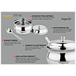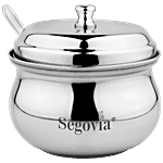 Segovia stainless steel multi-purpose liquid storage Ghee-Dani is made from premium quality 202 food-grade rust-proof material. This stylish and elegant Ghee-Dani is perfect to store ghee, oil, butter, pickle, liquid, etc. Ideal for every kitchen. Modular in shape to save space. This ghee pot is useful for puja articles in the mandir.