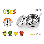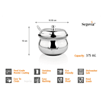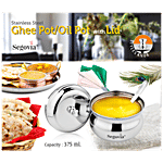 Segovia Stainless Steel Ghee/Oil Pot With Lid & Spoon - Rustproof, For Multipurpose Use, Silver, 375 ml (1 pc)