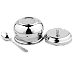 Segovia Stainless Steel Ghee/Oil Pot With Lid & Spoon - Rustproof, For Multipurpose Use, Silver