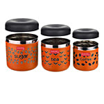 Hazel Stainless Steel Tea/Coffee/Sugar Container - Durable, Rustproof, Red, 3 pcs