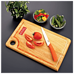 Neem Wood Chopping Board Wonderful, solid, hand-cut Neem wood cutting board. Neem has hostile to bacterial properties. Neem wood Cutting Board is a sound alternative for eco-friendly and naturally cognizant individuals. It has a moderate plan, smooth bends, and an advantageous thumb opening for safe taking care of and easy capacity. Neem has the prevalent enemy of bacterial properties, which are sans poison and 100% food safe. Common with no additional colours or stains. It can be utilized on the two sides for Chopping. 100% Natural Wood, Natural tone with no finish, no additional colors or colors. Neem wood's strands guarantee you won't dull your costly blades. Finger opening to hold tight your kitchen racks.