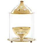 Borosil Akhand Diya - With Borosilicate Glass, Brass, Large, Unique Design, For Pooja Purpose, 1 pc