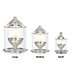 Borosil Akhand Diya - With Borosilicate Glass, Nickel, Small, Unique Design, For Pooja Purpose, 1 pc