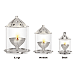 Borosil Akhand Diya - With Borosilicate Glass, Nickel, Large, Unique Design, For Pooja Purpose, 1 pc