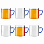 Borosil Vision Tea-N-Coffee Mug Set - Glass, Blue Handle, Microwave Safe, 190 ml (Set of 6)
