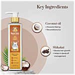 Coconut Oil, Coconut Fruit Juice, Aloe Vera Juice, Simmondsia Chinensis (Jojoba) Seed Oil, And Tocopheryl Acetate (Vitamin E), Shikakai, Manjishtha, Hibiscus, Amla Fruit Extract, Almond Oil, Tulsi Extract, Bhringraj.