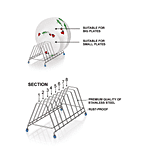 Leo Stainless Steel Rack can hold 8 plates/ sections together, Multi utility, long life item for your kitchen. It can be used to organize cookwares like dish, dinner plates. Useful for home kitchen, dining, office pantry area. Must have item for your kitchen, Ideal for home and office use, it hold plate and trays, after washing help in draining water from the plates, dishes. This Plate stand is useful for kitchen, dining table and office pantry area. Dish stand rack comes with good rust-free chrome finish