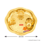 Hazel Brass Puja Thali with Diya and Sindur Wati is individually handcrafted. This is a beautiful brass pooja thali set with an attachment that can be used as divine gift. The thali pack comprises of a diya And sindur wati. On Diwali, anniversaries, and birthdays these items can be readily turned into a wonderful gift item.