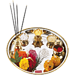 Hazel Stainless Steel Puja Pooja Aarti Thali Set, with Diva, Agarbatti Incense Holder and Kumkum Wati is individually handcrafted. This is a beautiful stainless steel pooja thali set with attached can be used as a divine gift. The thali pack comprises of a diva, agarbatti incense holder and kumkum wati. On Diwali, anniversaries, and birthdays these items can be readily turned into a wonderful gift item.