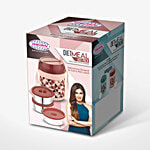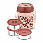Asian Diet Meal Hot Lunch Box - Stainless Steel, Plastic Lid, Dual Pink, Sturdy, High Quality, 3 pcs (2 pcs - 300 ml, 200 ml)