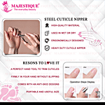 Majestique Stainless Steel Cuticle Nipper is a perfect beauty tool and choice for manicure needs. Made with high-grade and high-quality stainless steel has sharp pointed perfectly aligned tips which do not tear or snag while cutting cuticles and edges. Its sturdy grip and its high-quality spring action make cutting action effortless needing only the slightest pressure for smooth and accurate trimming. Designed for both left and right-handed users.