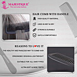 Majestique Hair Comb With Handle - Uniform Teeth, Anti-Slip Handle